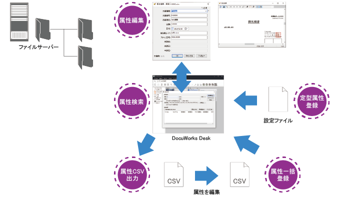 文書管理が期待できます。また、登録された属性情報を出力することが可能です。