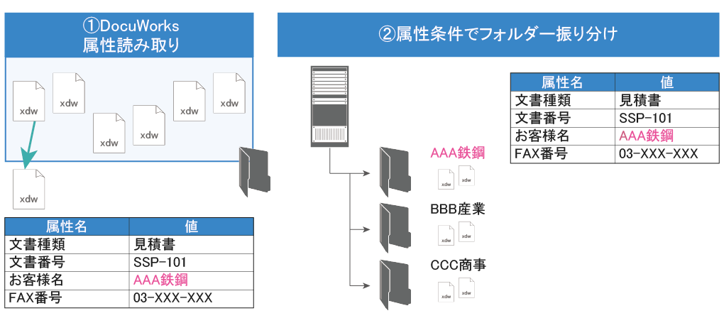 DocuWorks属性読み取りモジュールを利用して属性を読み取ることで、AWFMの機能と連携した処理が