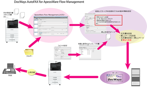 ApeosWare Flow ManagementとDocWaysを連携してFAX送信業務を行います。