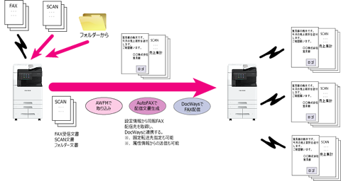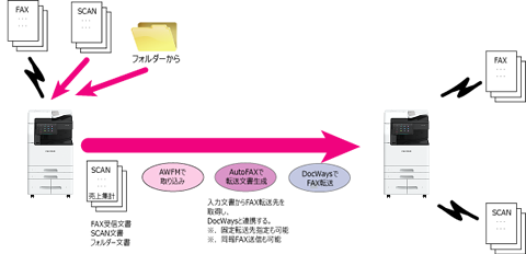 実際のFAX送信は連携するDocWaysにより、複合機を有効活用した効率の良い出力を実現します。