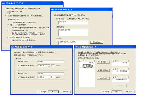 各種ファイルからFAX送信情報(FAX番号、送信先名、コメント)をキーワードを使って自動的に取得し、送信実行することができます。
