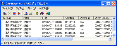 DocuWorksプラグインから送信実行を行った場合は、FAX送信状況をジョブモニターによってリアルタイムに確認することができます。