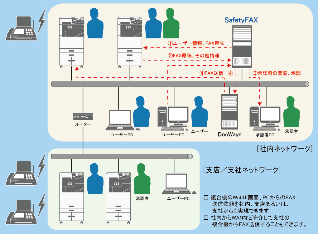- 承認者の承認なしではFAX送信は行えない仕組みを構築